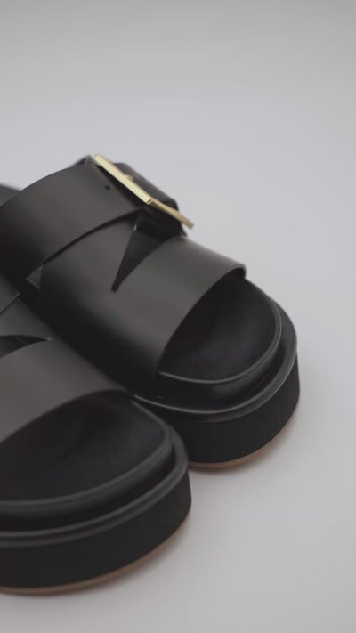 Sandalia Bio en piel 100% con piso de micro flexible y hebilla metálica