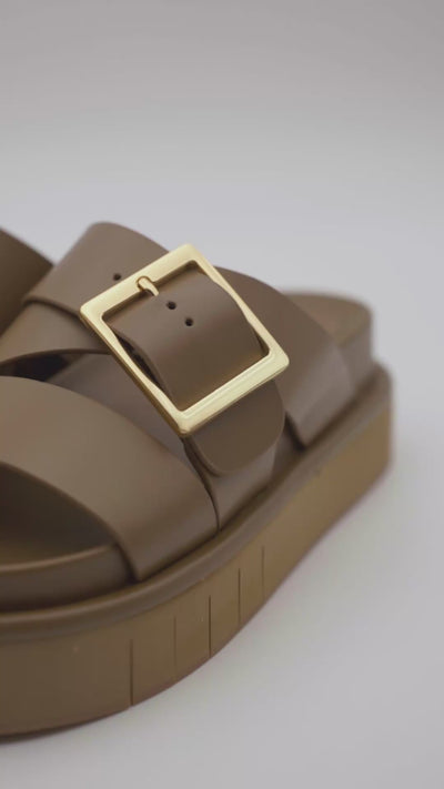 Sandalia Bio en piel 100% con piso de micro flexible y hebilla metálica