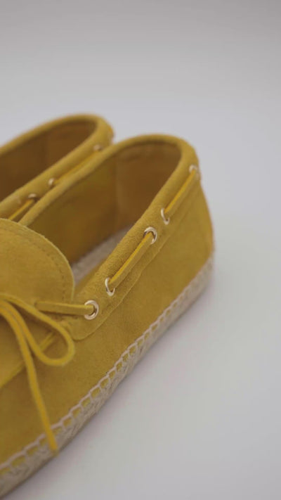 Mocasín en suede 100% con piso cosido a mano en yute natural