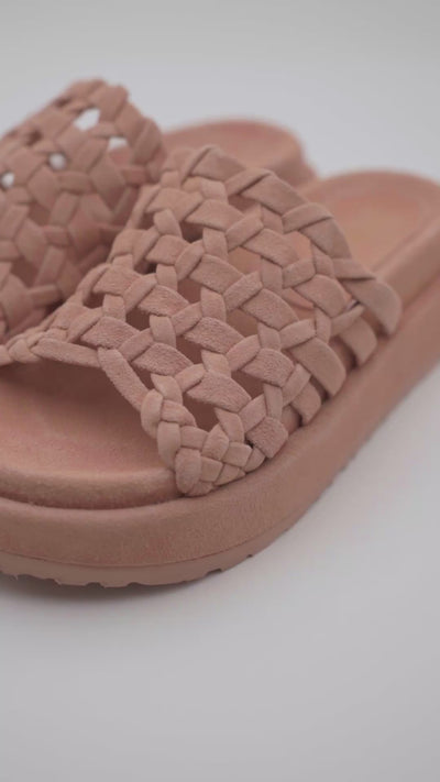 Sandalia plataforma en piel 100% y pala trenzada y plataforma forrada al tono