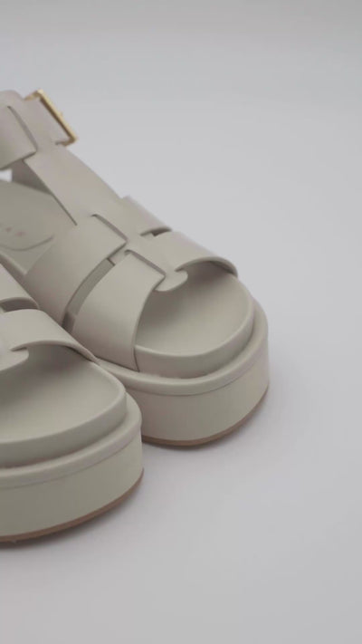 Sandalo Bio in pelle 100% con suola in microfibra flessibile e fibbia metallica.