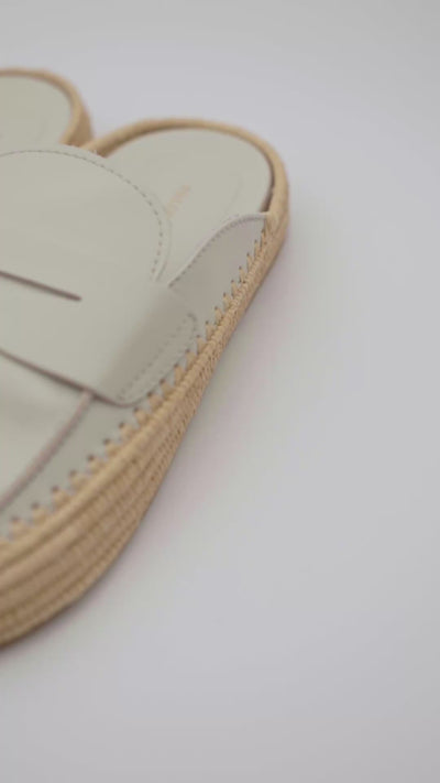 Backless loafer in 100% leather with a hand-sewn braided raffia sole in natural color