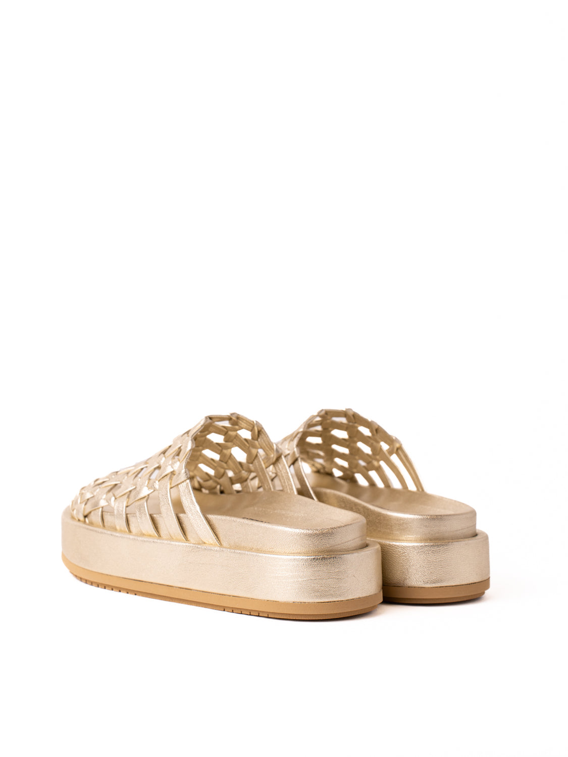 Experience luxury and elegance with NADIRA METALIZADO CHAMPAGNE. Crafted from 100% leather, this bio platform shoe is both stylish and sustainable. Walk confidently and comfortably with the perfect balance of fashion and functionality. Elevate your wardrobe with this exclusive piece.